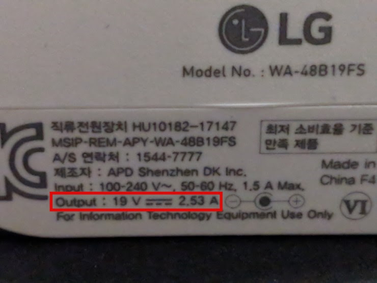 Output : 19V 2.53A 어댑터를 사용하고 있습니다. (사진참조)