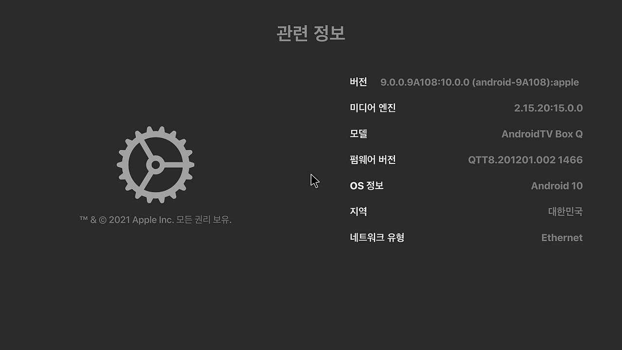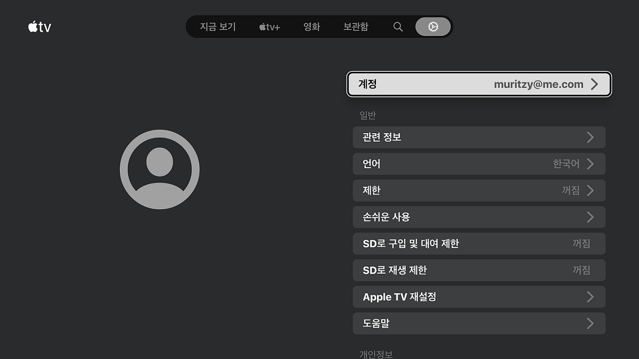 Apple TV+ 상단매뉴 맨끝에 설정아이콘으로 가면