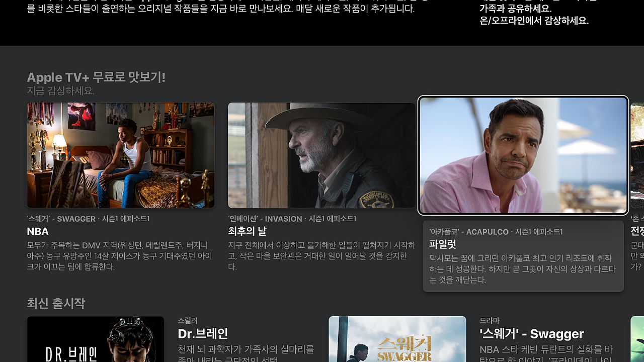 Apple TV+ 무료 보기도 영상등이 있습니다.