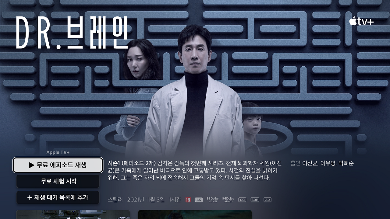 최신 한국제작 영상인 DR.브레인이 보여지고 있습니다.