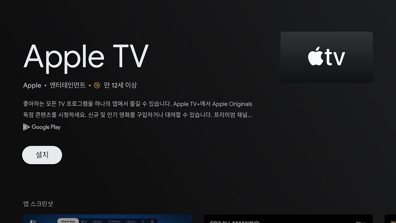 일단 CCGTV(크롬캐스트wit구글TV)에서 AppleTV+ 설치를 하였습니다.