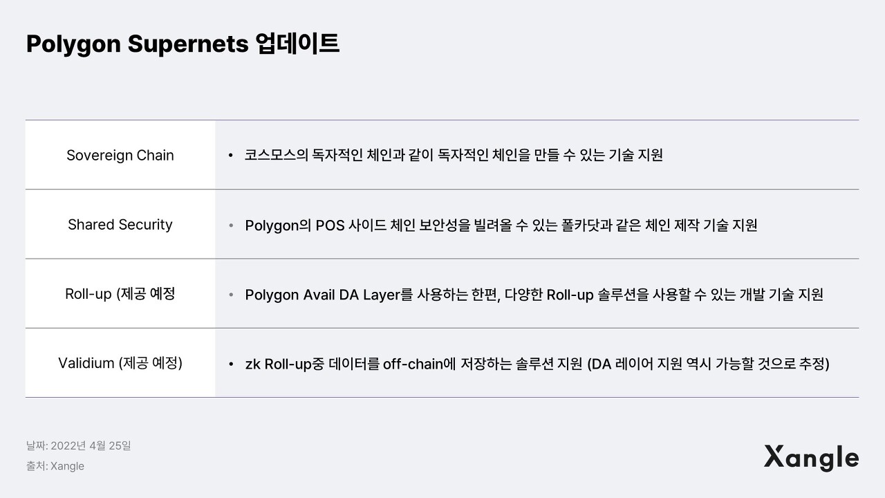 - 롤업 솔루션의 확장성과 상호 운용성을 위한 DA Layer인 Polygon Avail 출시 예정 (단 상호 운용성은 출시 이후 구체적인 내용이 파악 가능할 것)