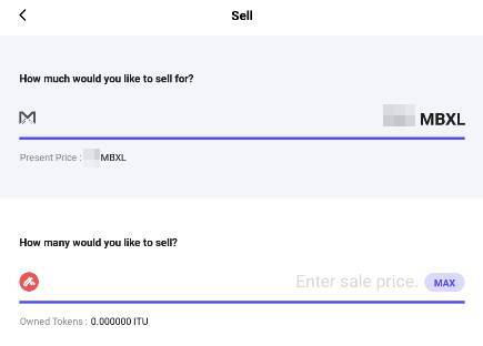 - 2개의 인서트 스크린이 표시됨화면 상단에 판매하고자 하는 MBXL의 가격을 입력하고, 하단에 판매하고자 하는 ITU의 번호를 기재하면 판매가 완료된다.