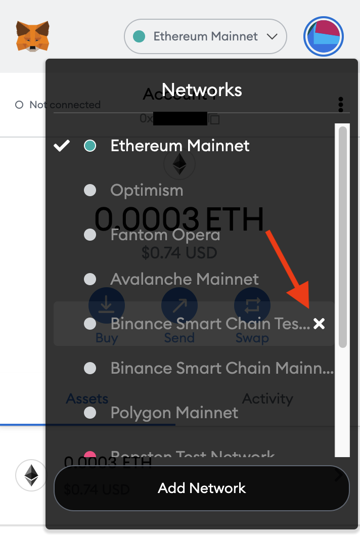 그것들은 본질적으로 MetaMask를 올바른 방향으로 가리키는 지시사항이기 때문에, 당신이 추가한 모든 네트워크는 당신이 추가한 방식(수동 또는 Chainlist와 같은 서비스를 통해)에 상관없이 탈착이 가능하다.사용 중인 플랫폼에 대해 다음 단계를 따르십시오.