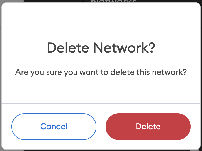 - 이전에 추가한 네트워크 목록을 표시하려면 앱 상단의 네트워크 선택기를 클릭하십시오.제거할 네트워크를 찾아 마우스로 가리키면 나타나는 십자 기호를 누르십시오.