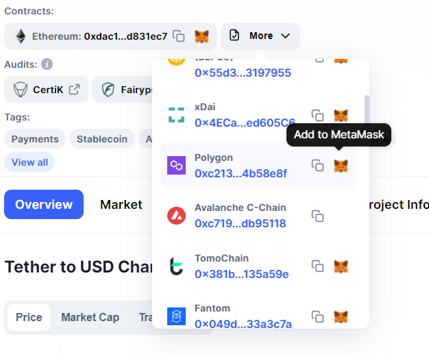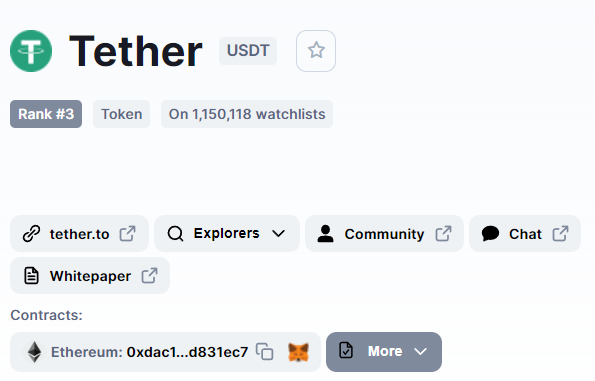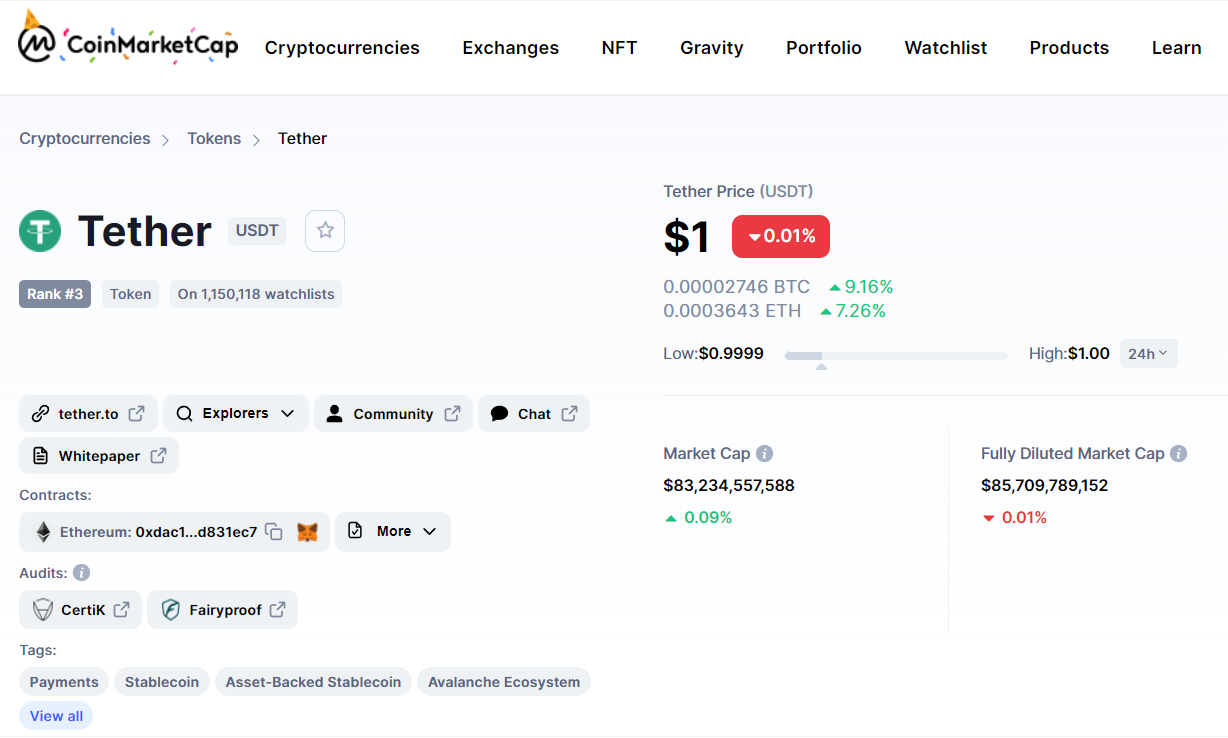 하기 CoinMarket 거래소의 Tether 사이트를 방문합니다.