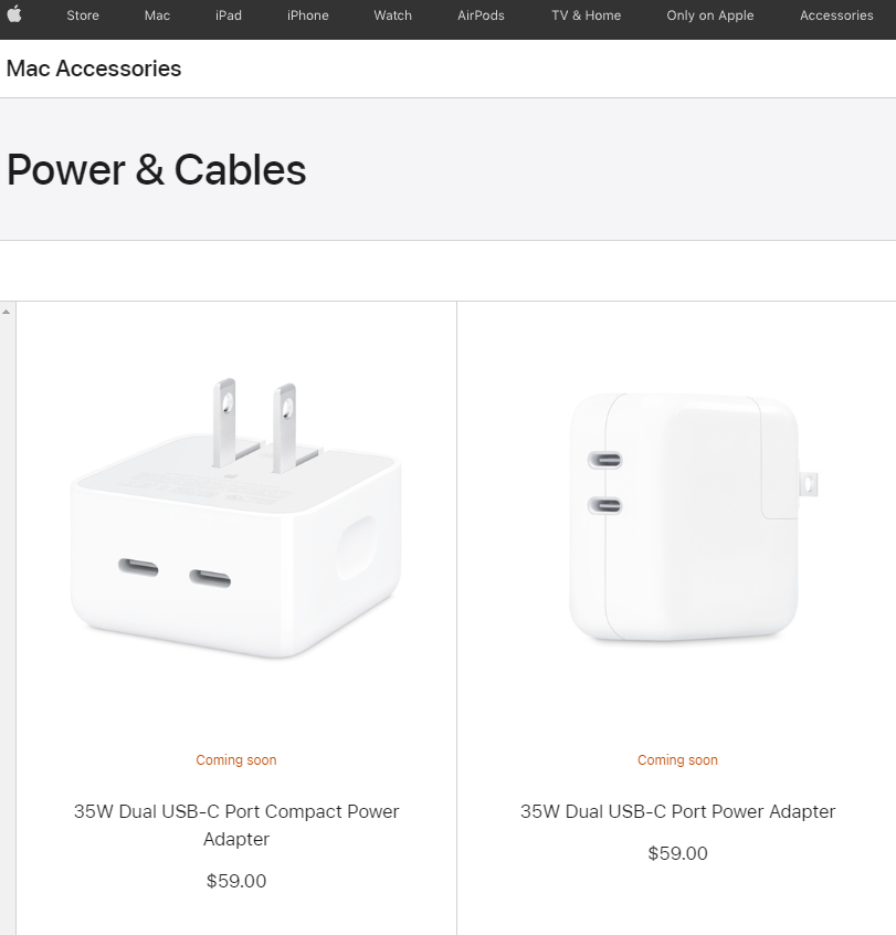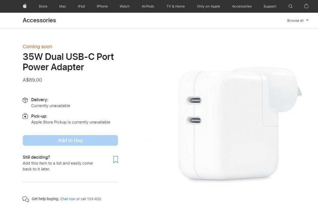 빠르면 2022년 4월, 충전기LAB는 애플의 35W 듀얼 USB-C 포트 콤팩트 전원 어댑터를 발표했는데, 이는 결국 나중에 나타났다.