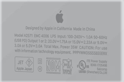 충전기의 기종은 A2571(Salcomp)로 100~240V~1.0A 50~60Hz의 입력에 대응하고 있습니다.또한 20V1.75A/15V2.33A/9V3A/5V3A의 4개의 고정 PDO를 지원합니다.두 포트는 각각 최대 35W를 지원하며 USB PD 프로토콜을 지원합니다.