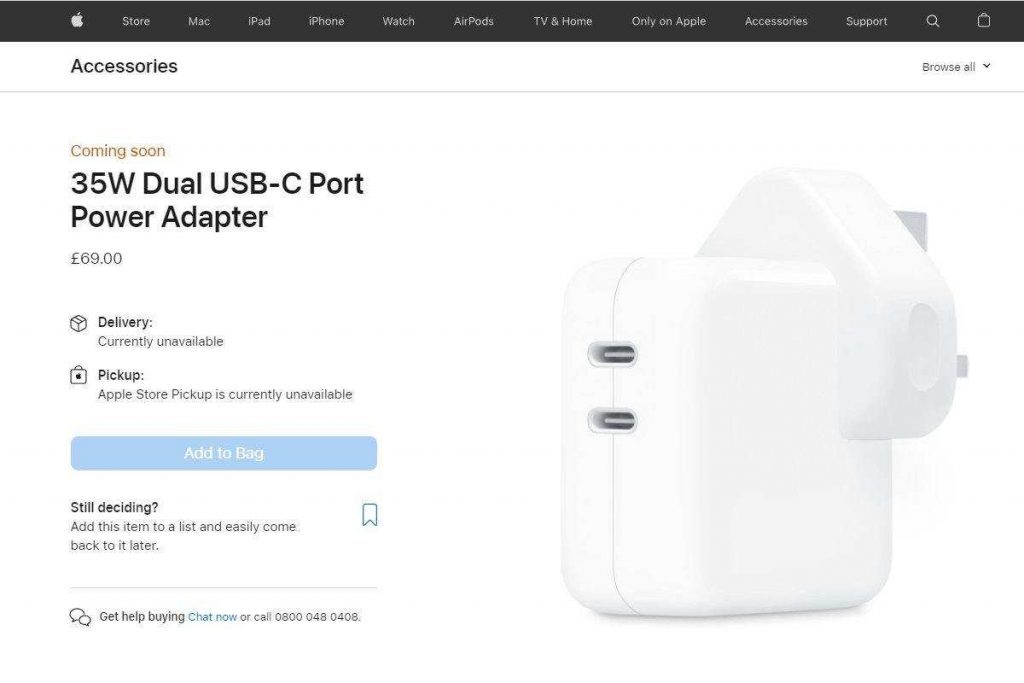 영국 온라인 애플 스토어에는 단 한 가지 버전의 35W 충전기 가격이 69파운드(약 84달러)밖에 없습니다.
