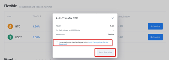 "계정" 및 "유연한 수익"을 클릭합니다.상환된 플렉시블 수익 제품에 대한 "재설정"을 클릭합니다."Huobi 수익 사용자 서비스 약관을 읽고 이해하며 동의함"을 클릭한 후 "Redeem"을 클릭합니다.교환자산계좌로 이체됩니다.