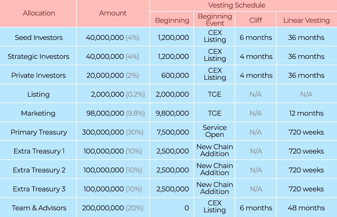 멀티 체인 사용 및 추가 체인 채택 가능성으로 인해 새로운 체인 채택 시 향후 사용할 수 있도록 3개의 엑스트라 트레저리가 준비되어 있습니다.