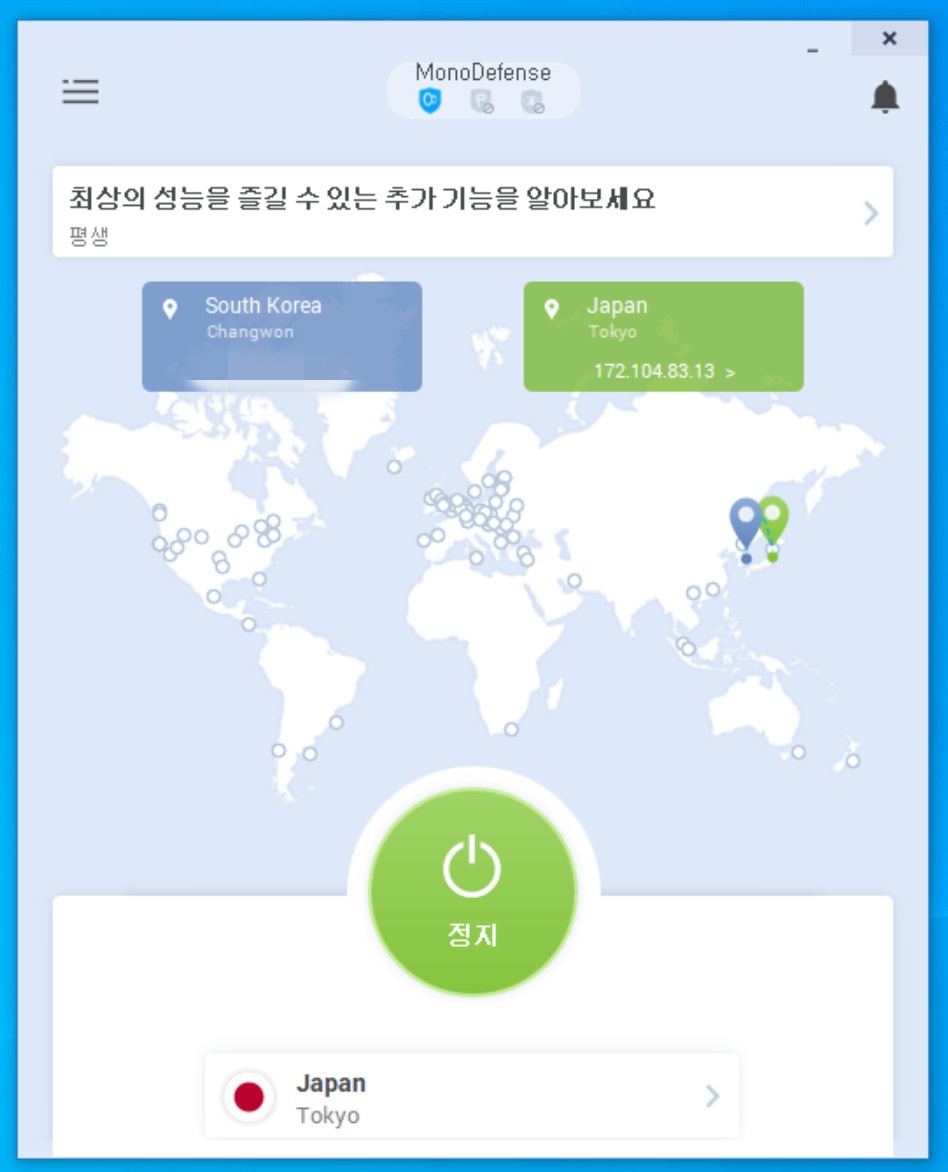 PC VPN을 켜서, Japan으로 설정을 해 봅니다.