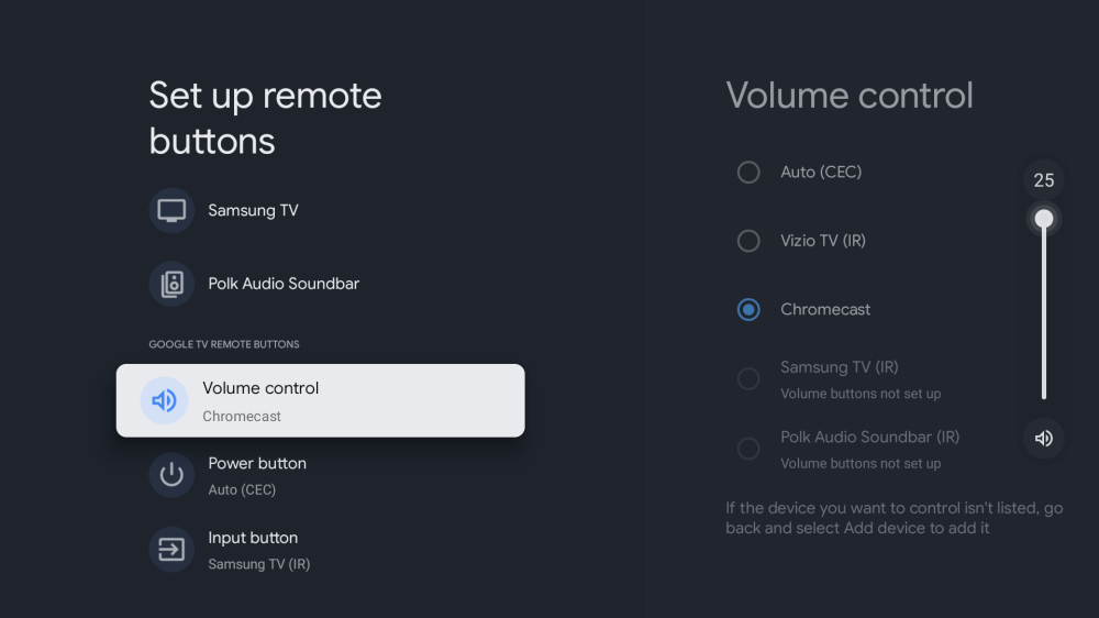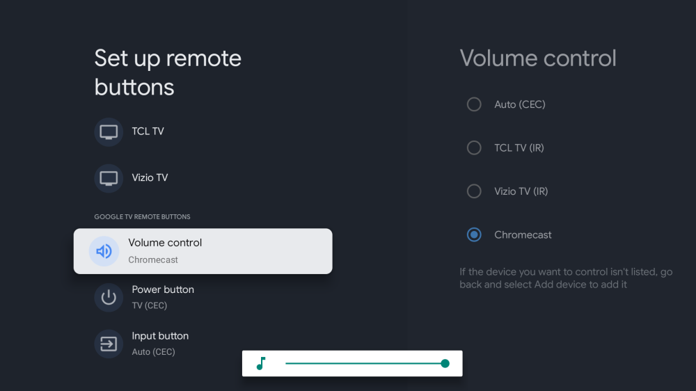 Chromecast의 시스템 볼륨 UI에 의존한다면, Chromecast의 Android 12가 UI를 아래로 표시하는 대신 디스플레이의 오른쪽으로 이동한다는 것을 알 수 있습니다.이 새로운 배치는 자막뿐만 아니라 TV 프로그램이나 영화의 중요한 부분을 가리는 것을 피하기 위해 더 나을 것이다.새로운 UI도 어두운 테마로 터치감이 좋습니다.