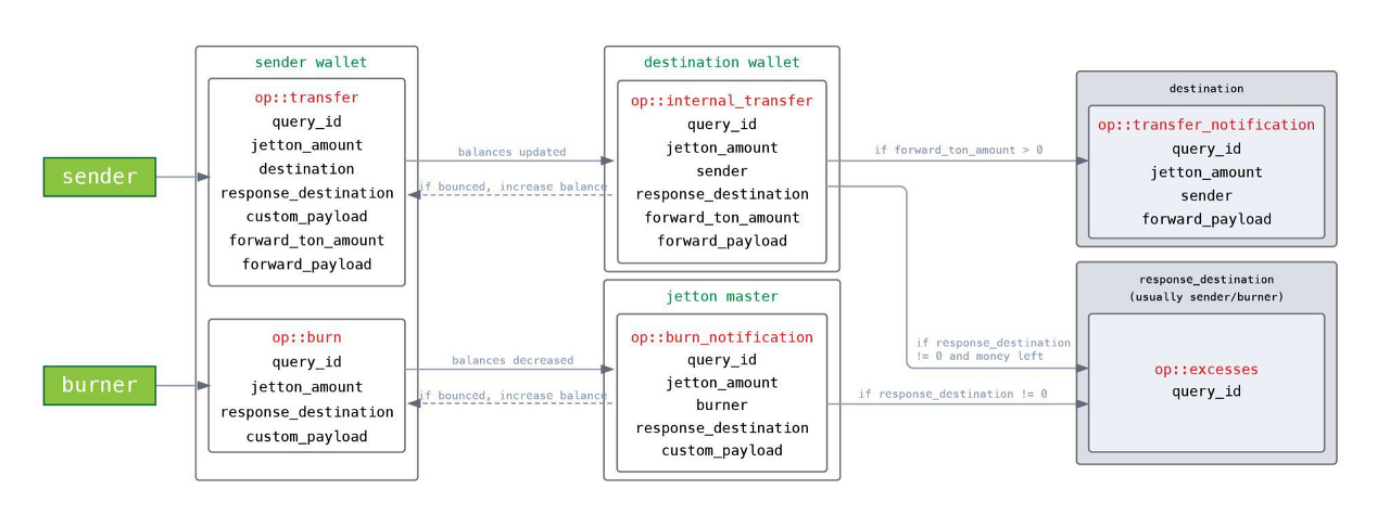 - sender_wallet sends an op::internal_transfer message to the recipient's wallet (destination_wallet)