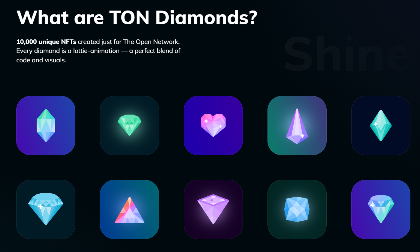 5. NFT 독점 사전 판매. TON 다이아몬드 보유자는 가장 유망한 NFT 컬렉션을 구매할 수 있는 우선권을 갖게 됩니다.