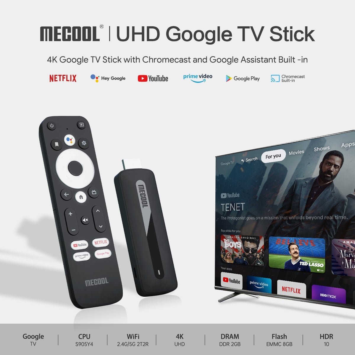 MECOOL KD3는당신이 넷플릭스, 아마존 프라임 비디오, 유튜브 및 기타 소스에서 4K HDR의 콘텐츠를 스트리밍하기 위해 TV의 HDMI 포트에 직접 연결 할 수있는 동글입니다.또한 Chromecast 기능을 지원하며 마이크와 Google 어시스턴트 키가 있는 리모컨이 함께 제공됩니다.