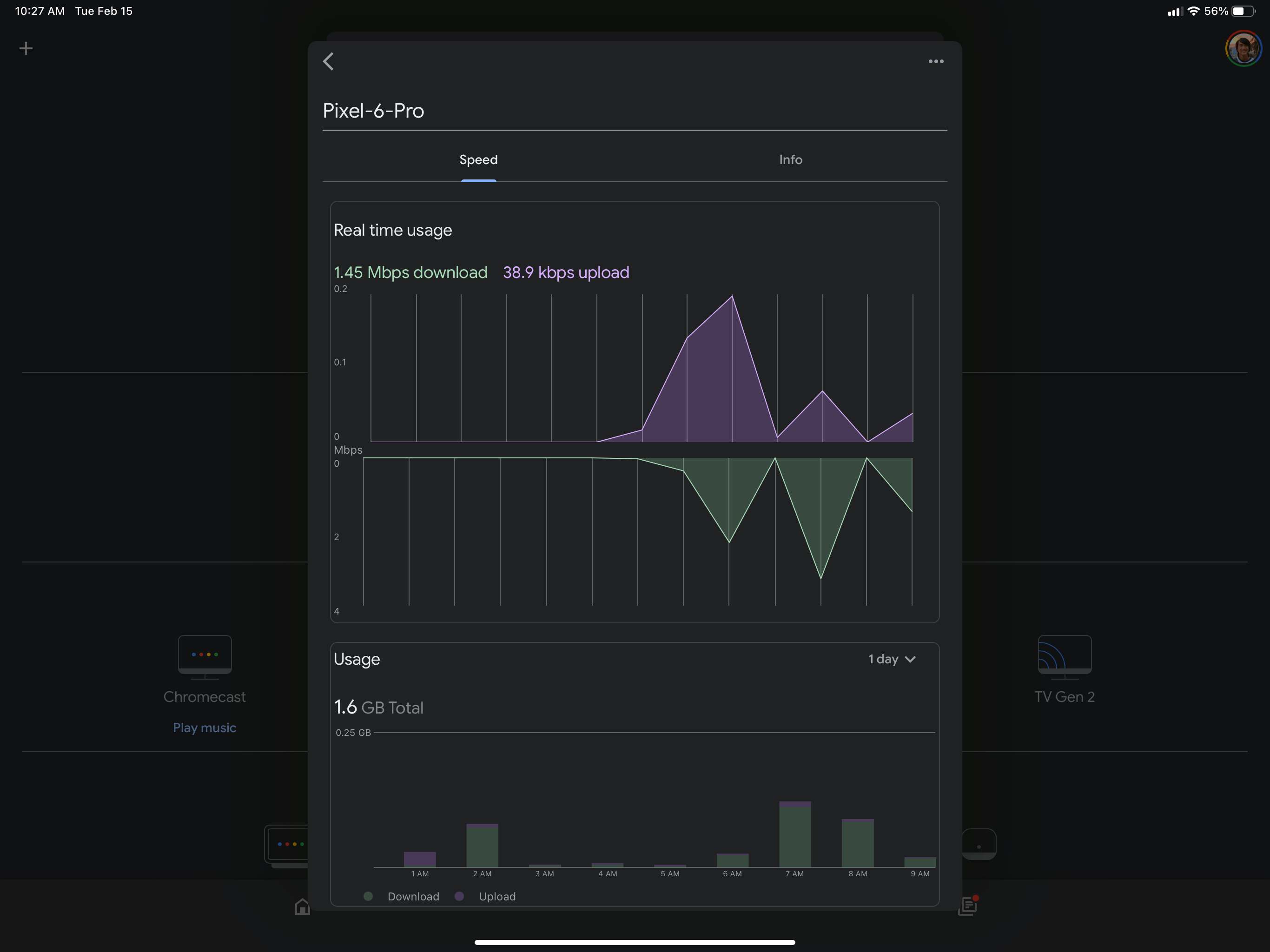 한편, Home 2.48은 Google Wifi 사용 통계를 시각적으로 약간 수정했습니다.기본적으로 kbps 수는 각 그래프의 하단 모서리로 이동하고 가독성을 높이기 위해 약간 더 큽니다.이는 장치별 통계와 인터넷 속도 탭 모두에 적용됩니다.다양한 버튼도 재배치되었습니다.