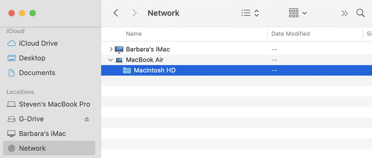 다른 Mac에서 Finder 창을 연 다음 네트워크를 누르십시오.Finder 창 사이드바의 Locations(위치) 아래에 있을 것이다(아래 스크린샷 참조).