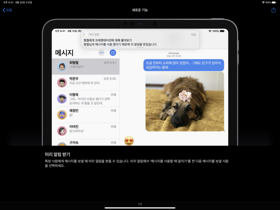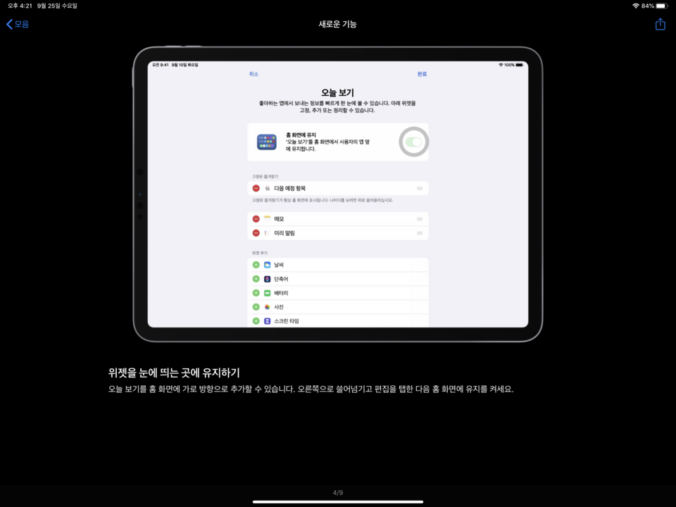 iPad OS 팁 화면입니다.