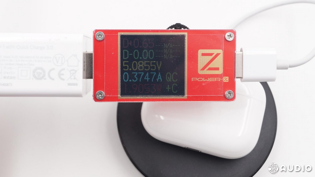 나는 오디오 네트워크가 AirPods Pro의 무선 충전 테스트, 충전 전압 : 5.085V, 충전 전류 : 0.374A에 POWER-Z KT001을 사용하는 것을 좋아합니다.