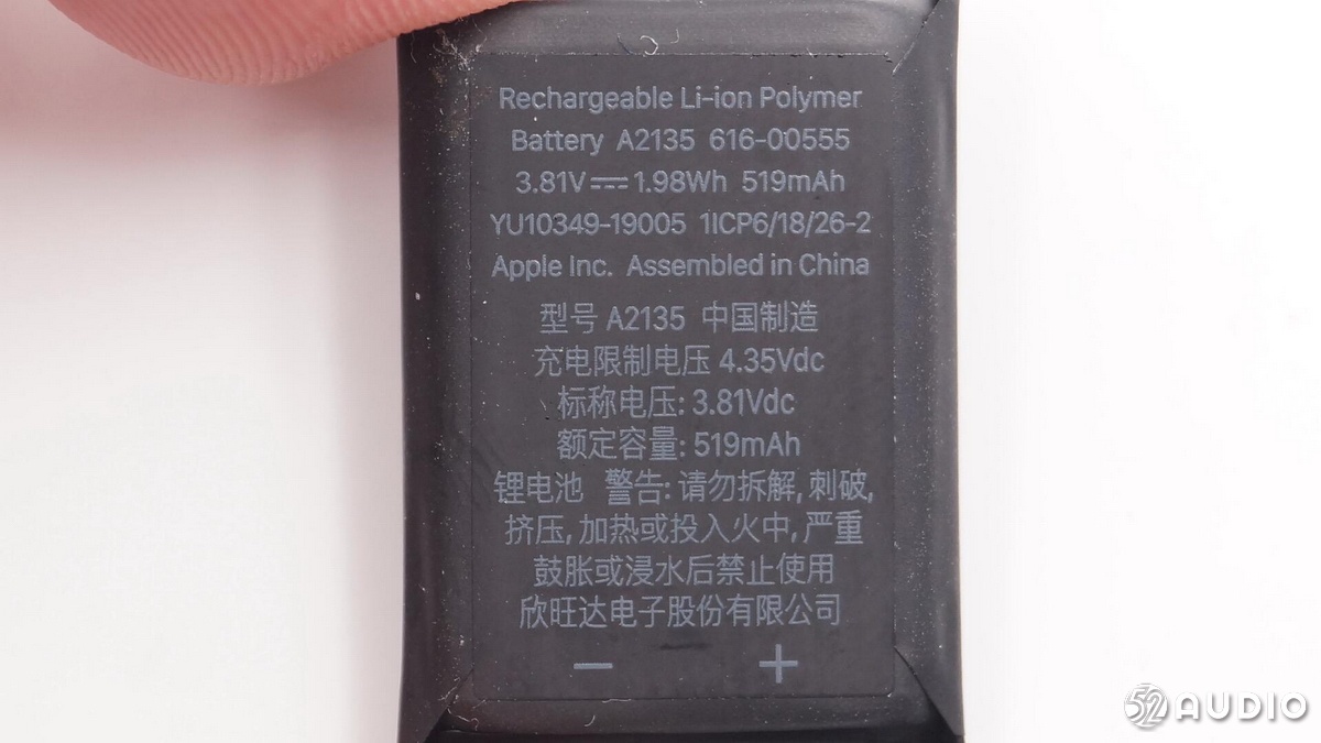 AirPods Pro 헤드폰의 내장 배터리 사양은 독일에서 제조 한 CP1154 A3H0C (직경 11mm, 두께 5.4mm), 3.7V, 0.16Wh입니다.이 크기의 배터리는 버튼처럼 보이므로 버튼형 리튬 배터리라고도합니다.이 패키지 유형의 배터리에는 많은 유형이 있으며 리튬 이온 재료를 재충전 할 수 있습니다.컴팩트 한 크기 덕분에 이어폰 내부의 제한된 공간을 활용하고 양극 및 음극의 용접을 용이하게하며 많은 브랜드에서 채택하고 있습니다.