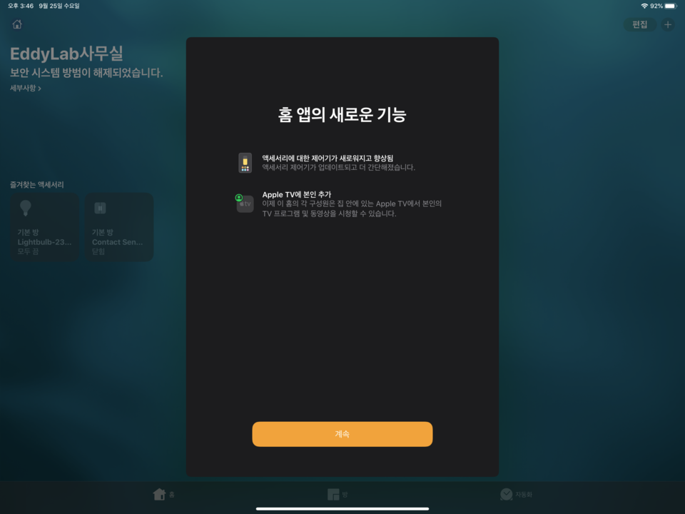 "바로 가기"App 내장 App에 갤러리 제안 된 자동화 일과 맞춤 개인 / 홈 오토메이션에서 트리거로 작동하는 단축키를 자동으로 실행 "홈"App의 "자동화"탭에서 바로 가기를 고급 작업으로 지원