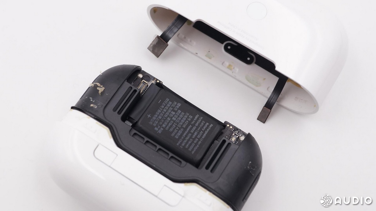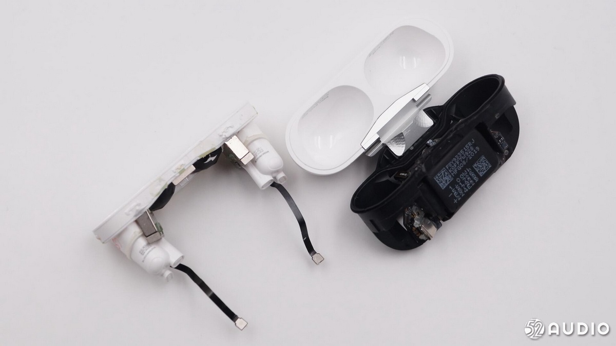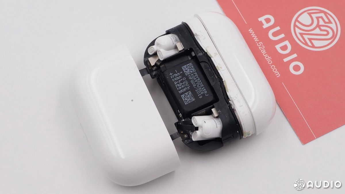 두 번째 사진은 분해 된 이어폰 및 충전 케이스 사진입니다.그림에서 AirPods 3의 표시기가 전면 위치에 있고 페어링 버튼의 위치가 명확하게 보이지 않지만 무선 충전을 지원한다는 것을 알 수 있습니다.