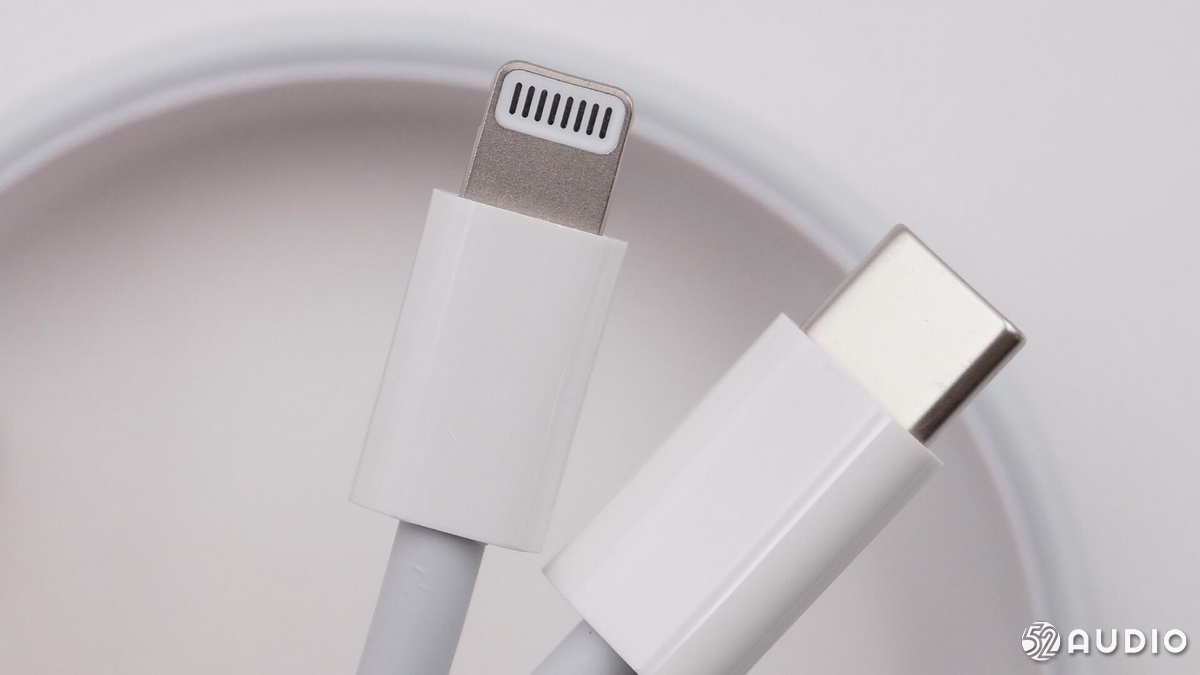 USB-C 플러그 및 번개 플러그 클로즈업.
