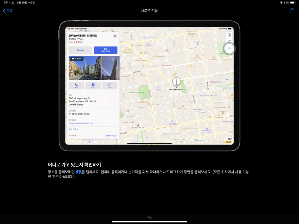 미국을 겨냥한 새로운 맵을 공개했다.보다 포괄적 인 도로가 포함되고 주소의 정확도가 향상 보행자를위한 지원이 강화 된 세부 사항을 볼 수있는 지역이 증가 "Look Around '를 사용하면 고해상도의 인터랙티브 3D 체험 거리의 탐험이 수 좋아하는 장소의 목록을 수집하고 친구 나 가족과 쉽게 공유 가능 매일 사용하는 장소에 쉽고 빠르게 탐색 할 수있는 "즐겨 찾기"