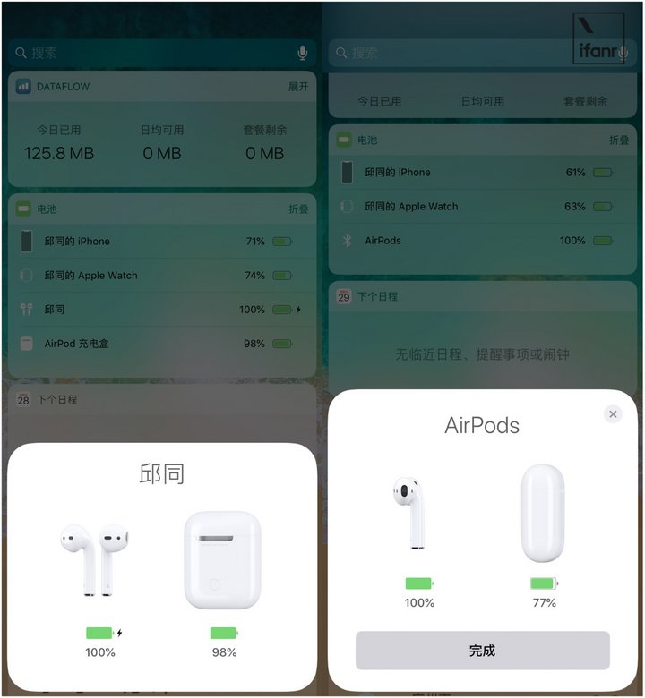 별장의 AirPods는 iPhone의 음극 화면에 왼쪽 및 오른쪽 헤드폰 및 헤드폰 상자의 전원을 표시 할 수 없습니다 AirPods의 헤드폰의 전원은 일반 Bluetooth 헤드셋의 전원과 동일하며 제어 센터의 Bluetooth 아이콘 옆에 표시됩니다 (정품은 Bluetooth 아이콘 옆에 표시되지 않음). 전기).