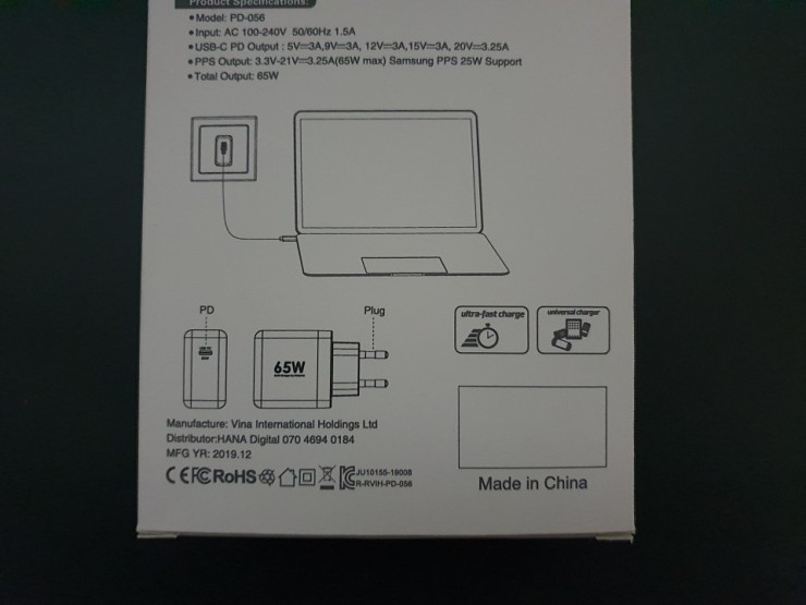 충전기 모델은 PA0207로 100~240V의 넓은 전압 입력과 최대 22.5W의 고속 충전을 지원한다.