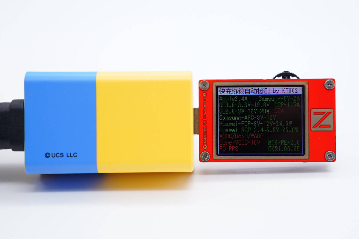 POWER-Z KT002를 사용하여 포트 C2의 고속 충전 프로토콜 읽기 동일한 고속 충전 프로토콜을 지원합니다.