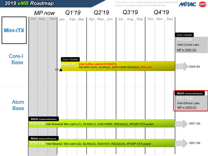 지금까지 기술 측면에서 우리가 알고있는 전부입니다.대만의 전자 회사 인 MITAC의제품 로드맵(PDF)은 새로운 Elkhart Lake Celeron / Pentium 프로세서를 기대할 수있는시기를 알려줍니다.