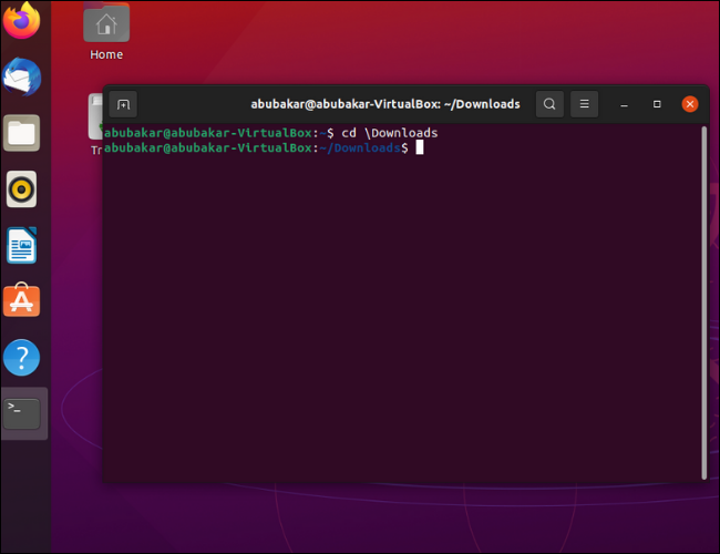터미널을 엽니다. 그런 다음 다운로드한 DEB 파일이 있는 디렉토리 로 cd 하십시오. 이 경우 파일은 \Downloads 디렉토리에 있습니다.
