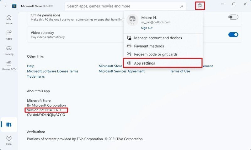 Microsoft Store 앱:버전 22110.1402.6.0 이상.