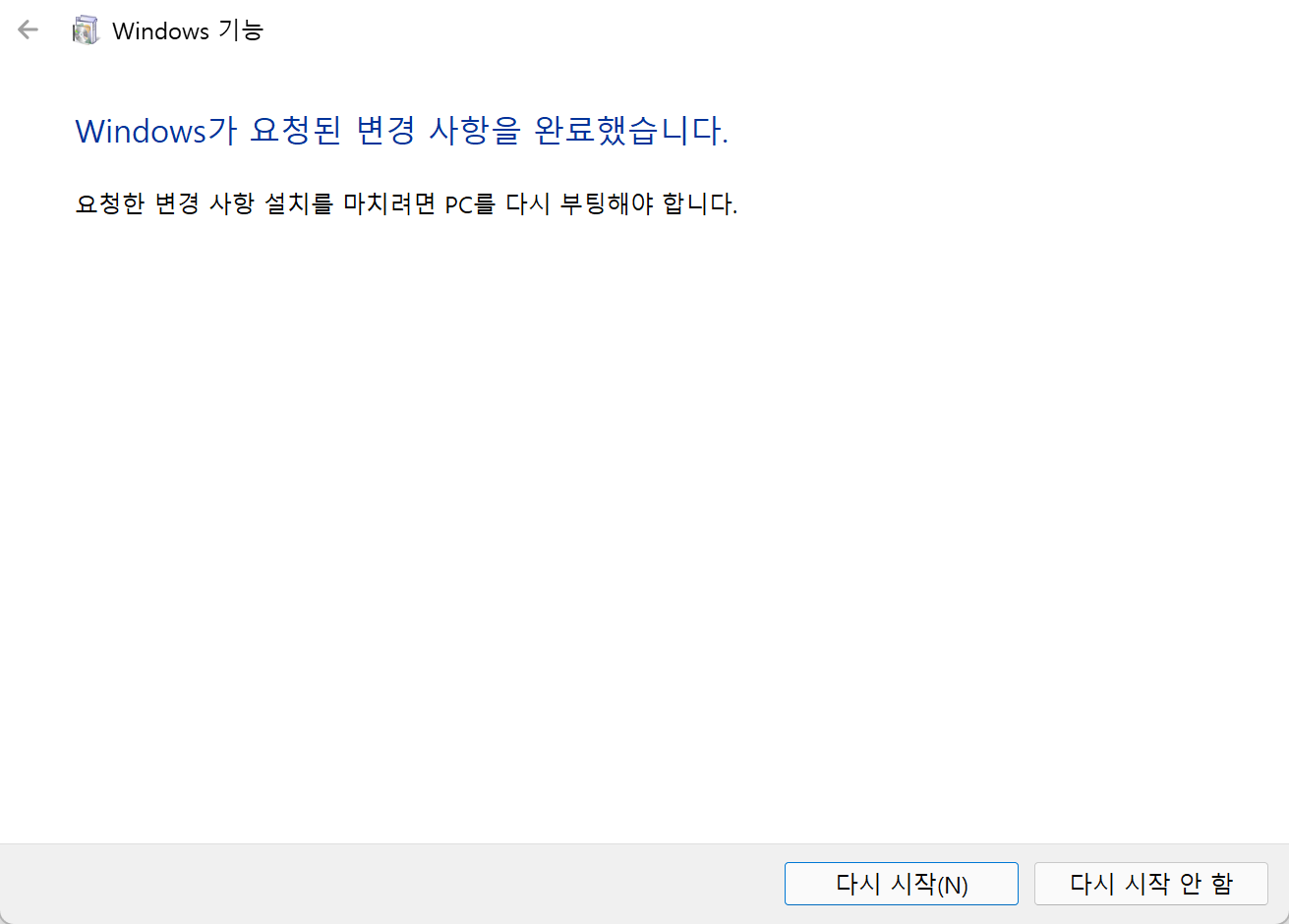 Windows 를 재기동합니다.