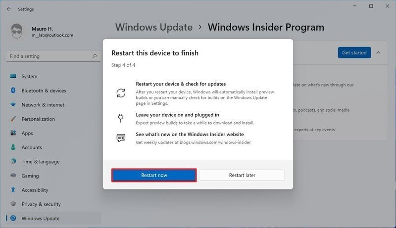 단계를 완료하면 컴퓨터를 Windows Insider 프로그램의 베타 채널에 등록할 수 있다.