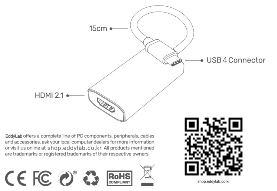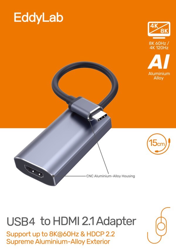 [EddyLab] USB4 to HDMI2.1 8K Video 어댑터 4K120Hz 8K60Hz 맥북 EVO노트북 미니PC