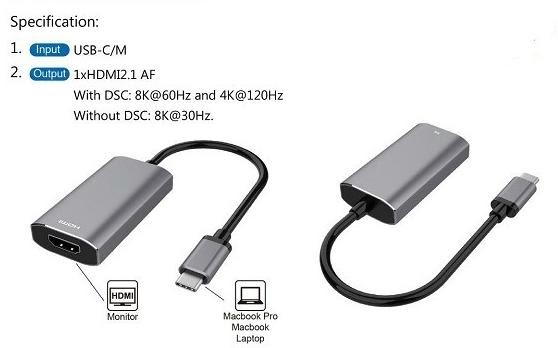 USB4 to HDMI2.1 어댑터는 RGB 4:4:4에서 8K 60Hz의 최대 비디오 해상도를 지원합니다. (DSC지원)