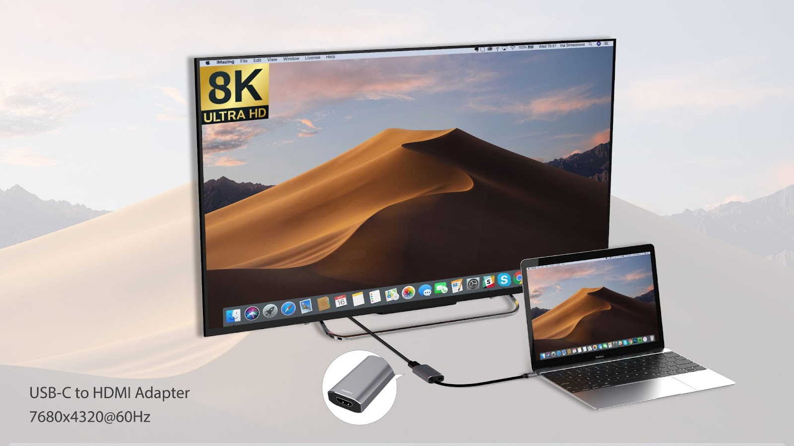 * USB4 to HDMI2.1 어댑터를 사용하여, 8K 또는 4K 120Hz 게임 모니터와 TV를 노트북, 스마트폰, 태블릿 등에 연결하십시오.