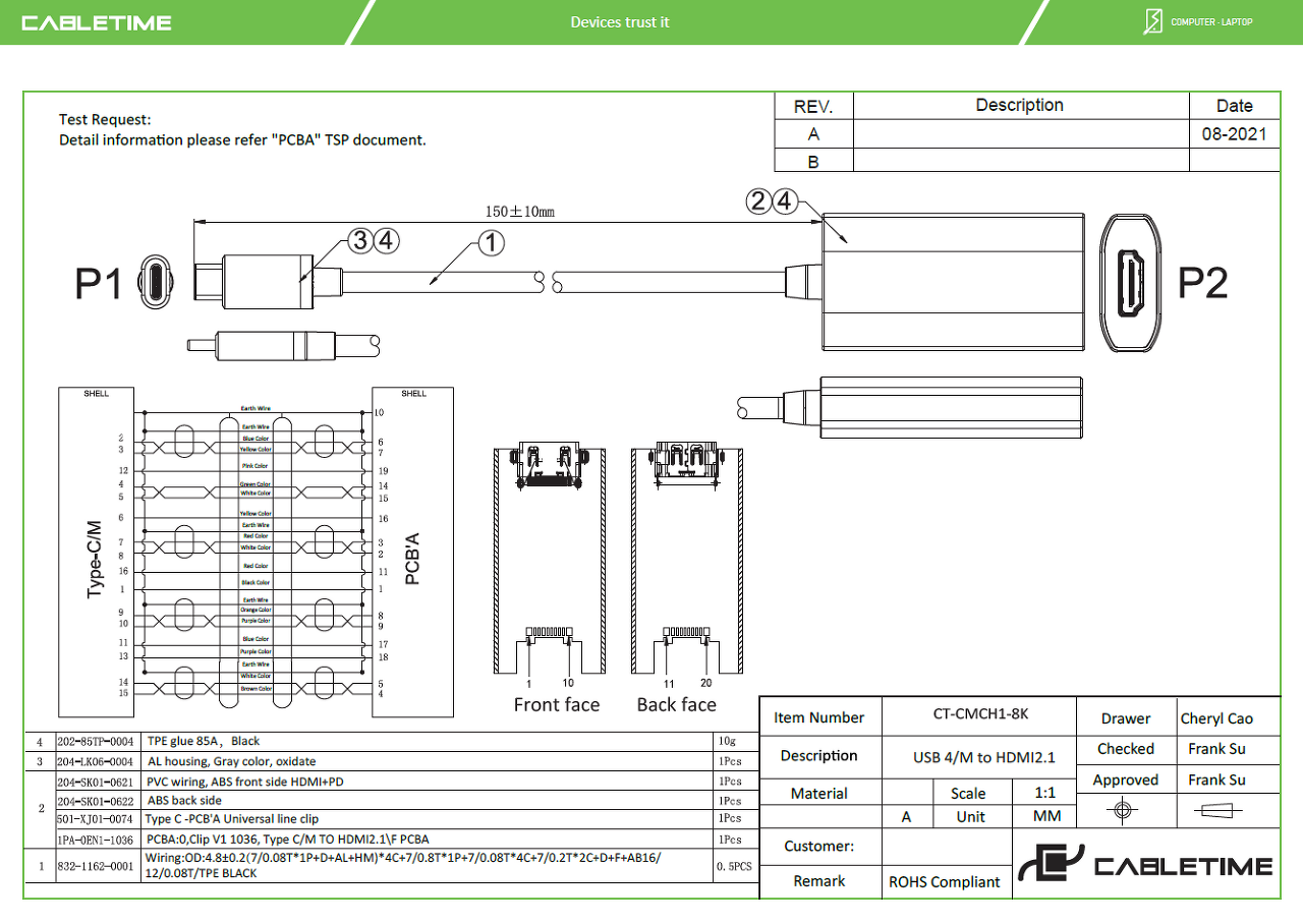USB4 to HDMI2.1 어댑터를 사용하여 화질 손실 없이 고품질 비디오를 즐기십시오.