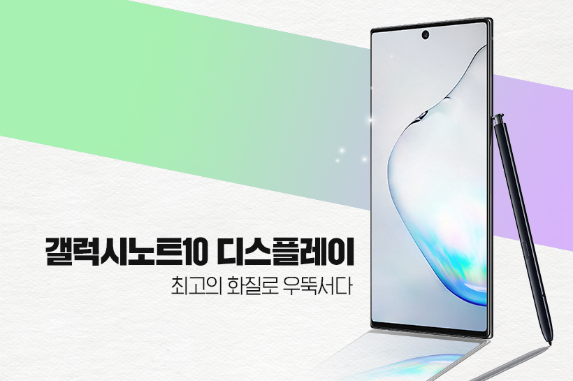 갤럭시노트10 시리즈는 6.8형과 6.3형 크기의 OLED로 각각의 해상도는 QHD+(3,040×1,440), FHD+(2,280×1,080)이다. 특히, 전면 카메라 홀을 제외한 앞면을 화면으로 채운 풀스크린이 특징으로 화면이 차지하는 비율이 약 94%에 이른다.