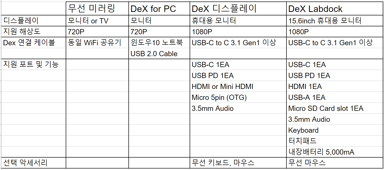 결선을 해야지만 DeX 모드를 제대로 사용 가능합니다.