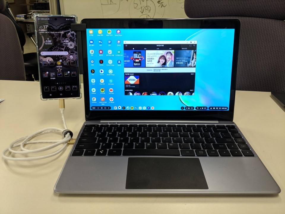 Dex for PC는 일반 win10기반의 노트북에 Type-C USB 2.0포트를 연결하여