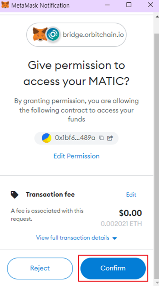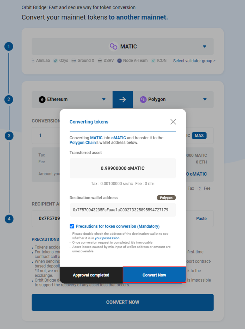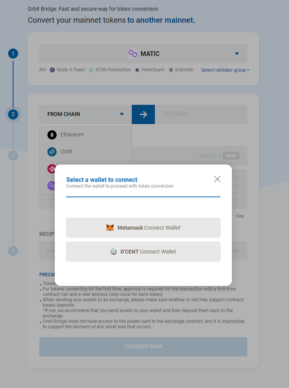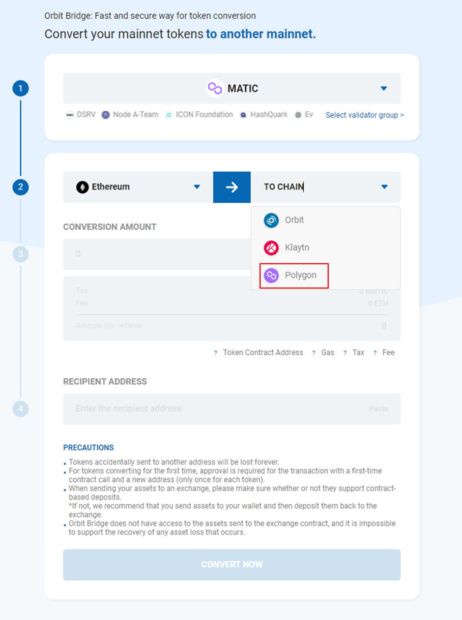 2. Orbit Bridge의 MATIC(ERC-20)를 MATIC(Polygon)로 변환