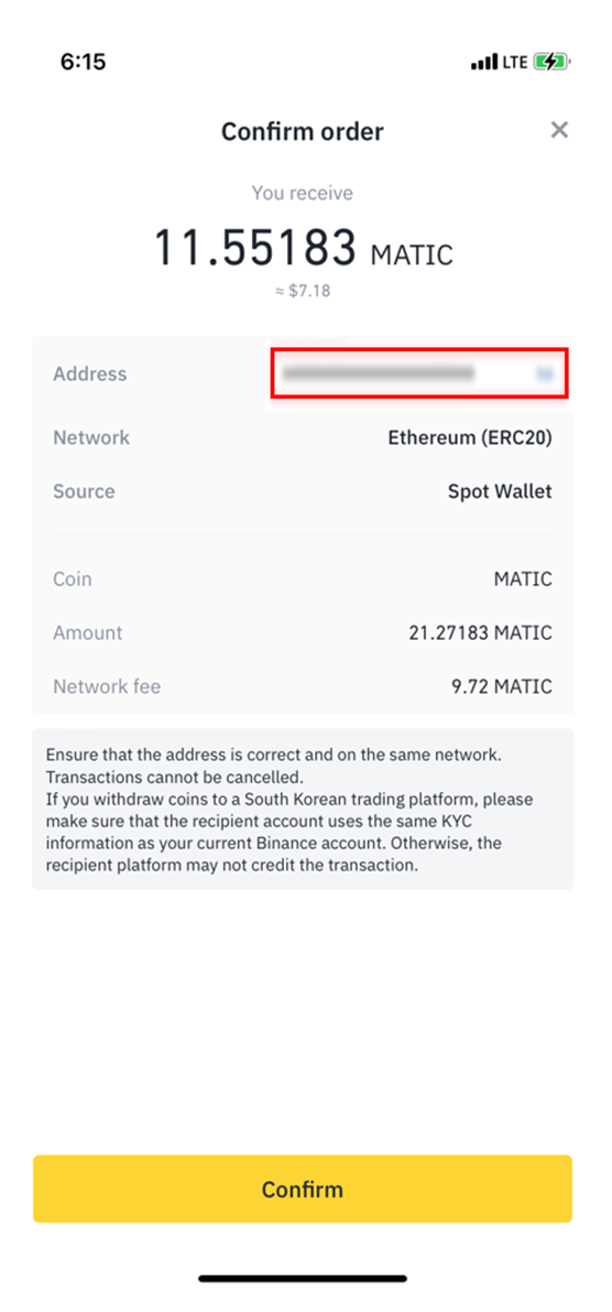 8. Ethernet 기반의 MATIC(ERC-20)를 선택합니다.