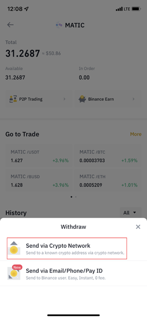 1. 바이낸스 -> Matic(erc-20)을 지갑에 넣습니다.