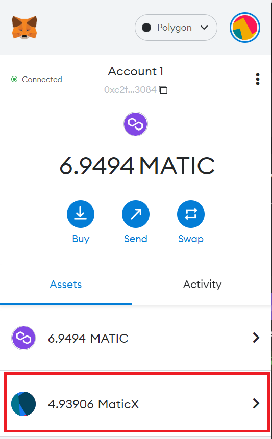 이제 지갑 안에 있는 MaticX를 볼 수 있습니다!