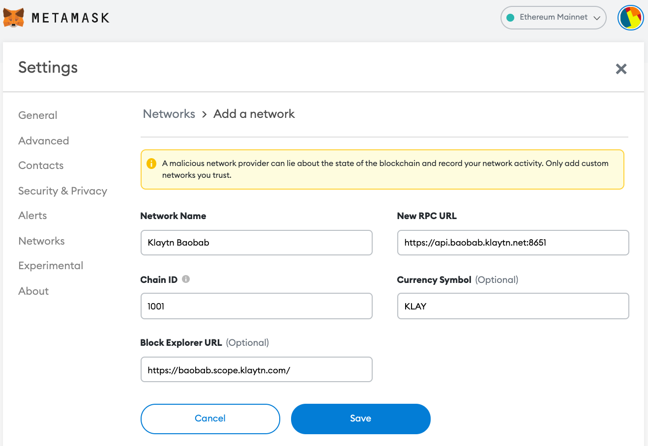 MetaMask 사용자 주의사항 (Kaikas 사용자는 해당사항 없음)