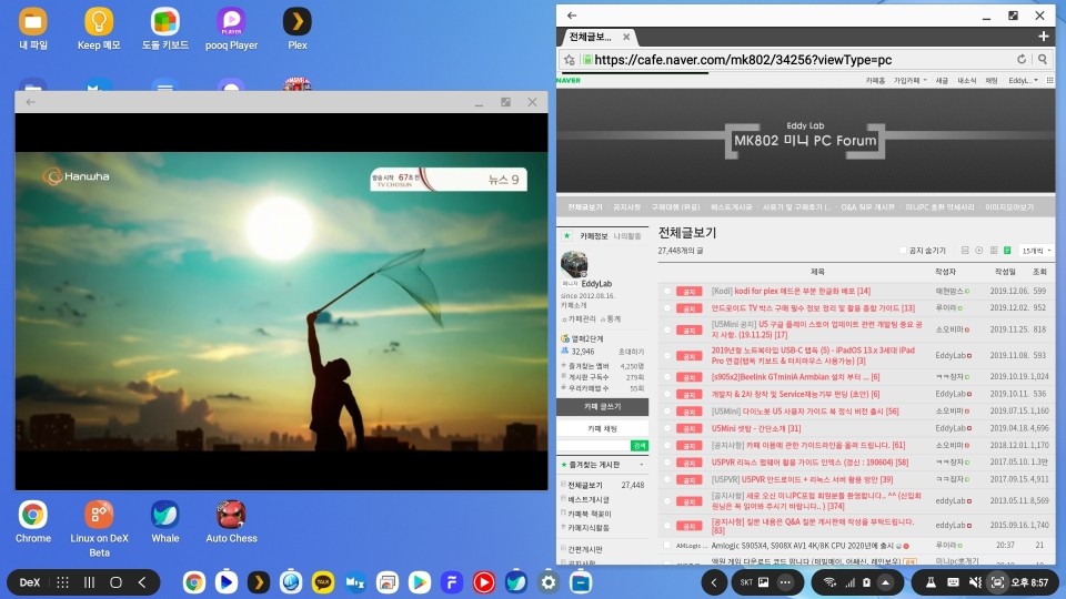 DeX의 멀티윈도우 기능을 이용하여. 여러개의 동영상 화면과